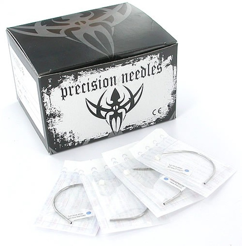 Il est nécessaire d'utiliser un autre type d'aiguille pour réaliser certains piercings, par exemple une aiguille de piercing courbée. L'aiguille est disponible dans différentes tailles de calibre que tu peux choisir.