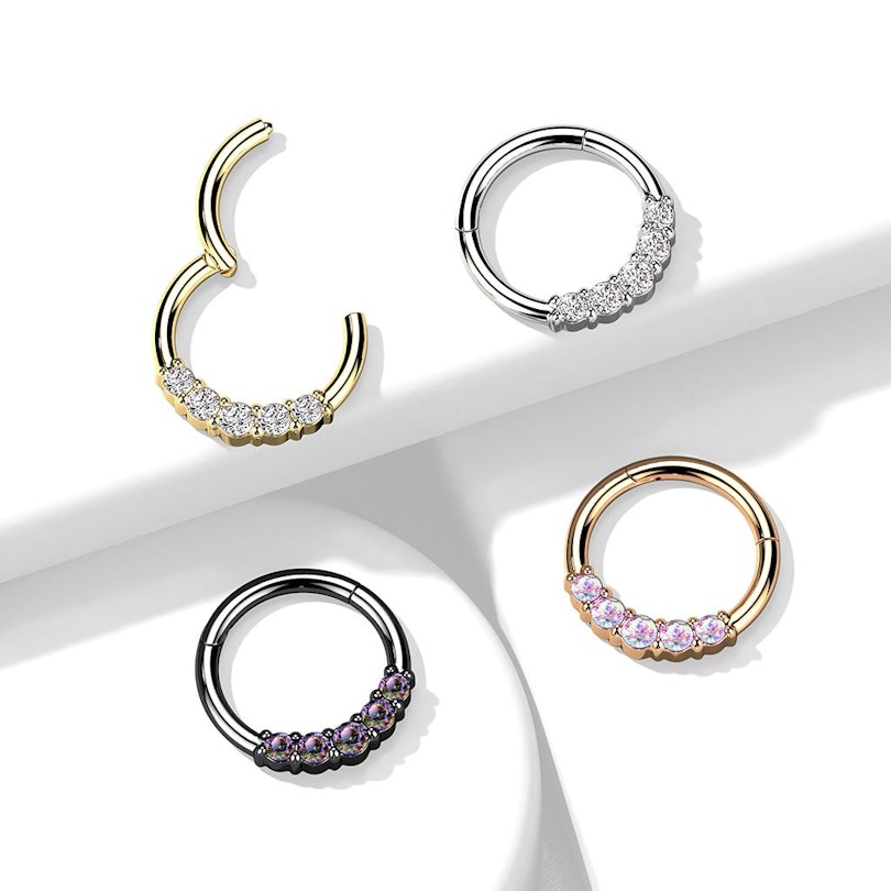 Anneau à charnière en acier chirurgical avec cinq pierres