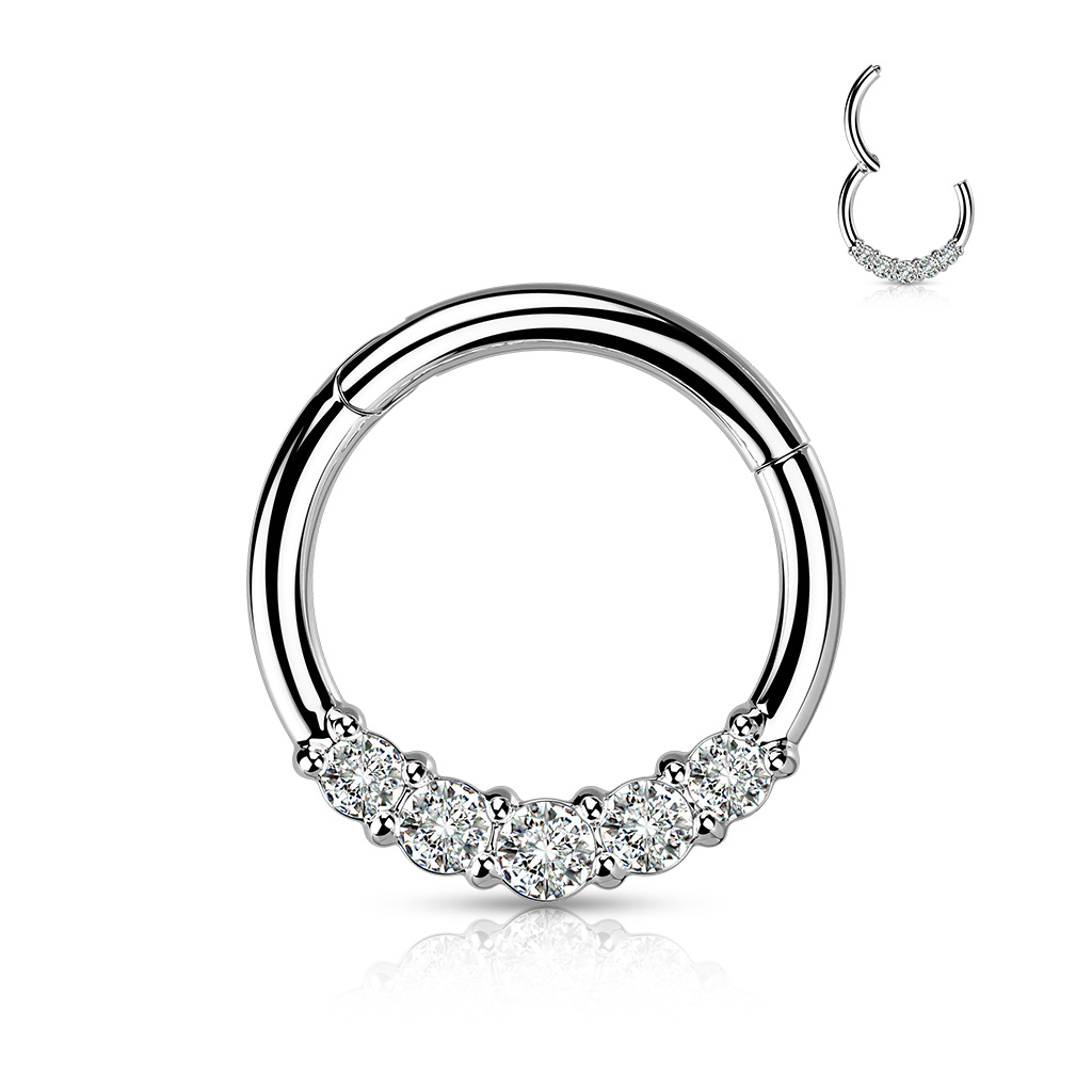 Anneau à charnière en acier chirurgical avec cinq pierres