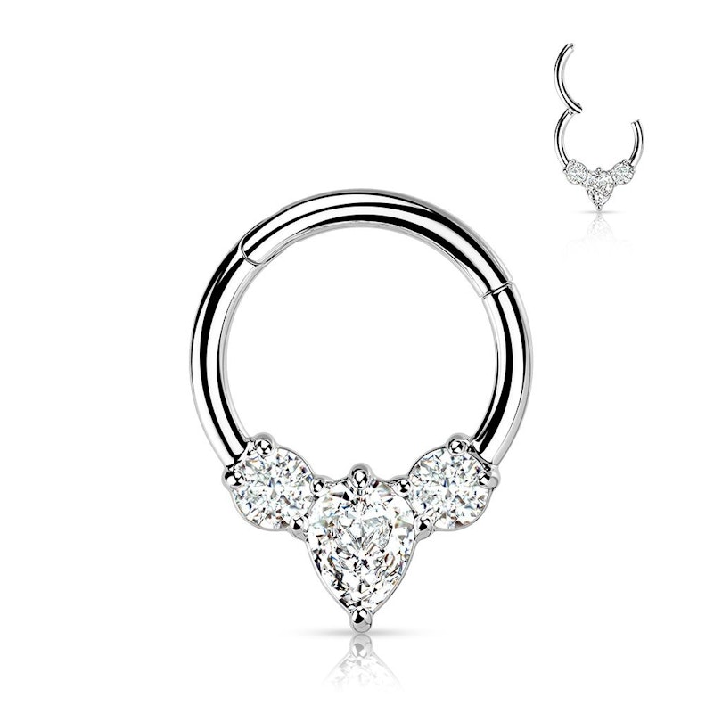 Anneau à charnière en acier chirurgical avec pierre en forme de poire