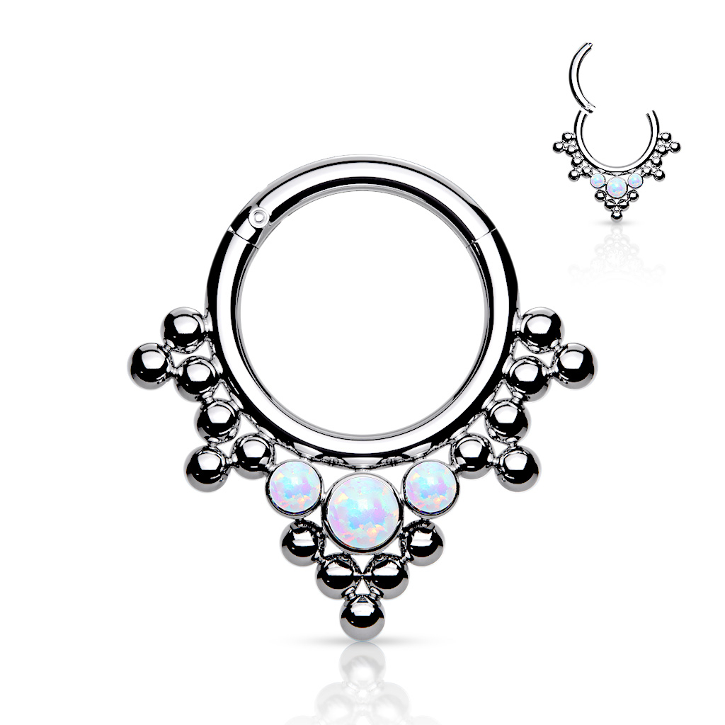 Nom: Anneau à charnière en titane avec perles et opales groupées