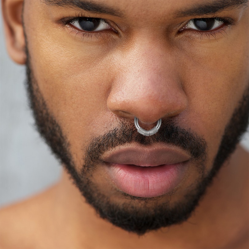 J'ai eu environ 3 de ces anneaux, principalement parce que je les perds / la partie de verrouillage en fil après un certain temps. Mais j'adore l'apparence de cet anneau, et quand le 'verrou' en fil (qui est juste un très petit ressort) est retiré, les extrémités de l'anneau lui-même sont lisses et rondes, ce qui en fait le premier bijou parfait à mettre dans un septum étendu. J'ai porté cela comme mon seul bijou de septum de 3 mm pendant un certain temps, car c'était très facile à mettre. Je recommande vivement pour le dead stretching ou même si vous utilisez un taper pour les plus petites tailles de septum. De plus, la partie de verrouillage en fil donne l'illusion que l'anneau est légèrement plus épais qu'il ne l'est déjà, ce que j'adore. Je souhaiterais juste qu'il soit disponible en tailles de gauge plus grandes.