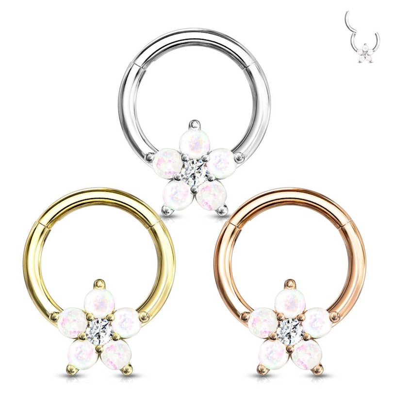 Anneau avec charnière et une fleur d'opales