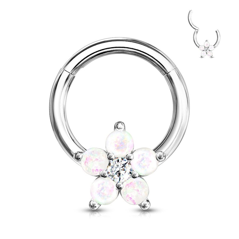 Nom: Anneau avec charnière et une fleur d'opales