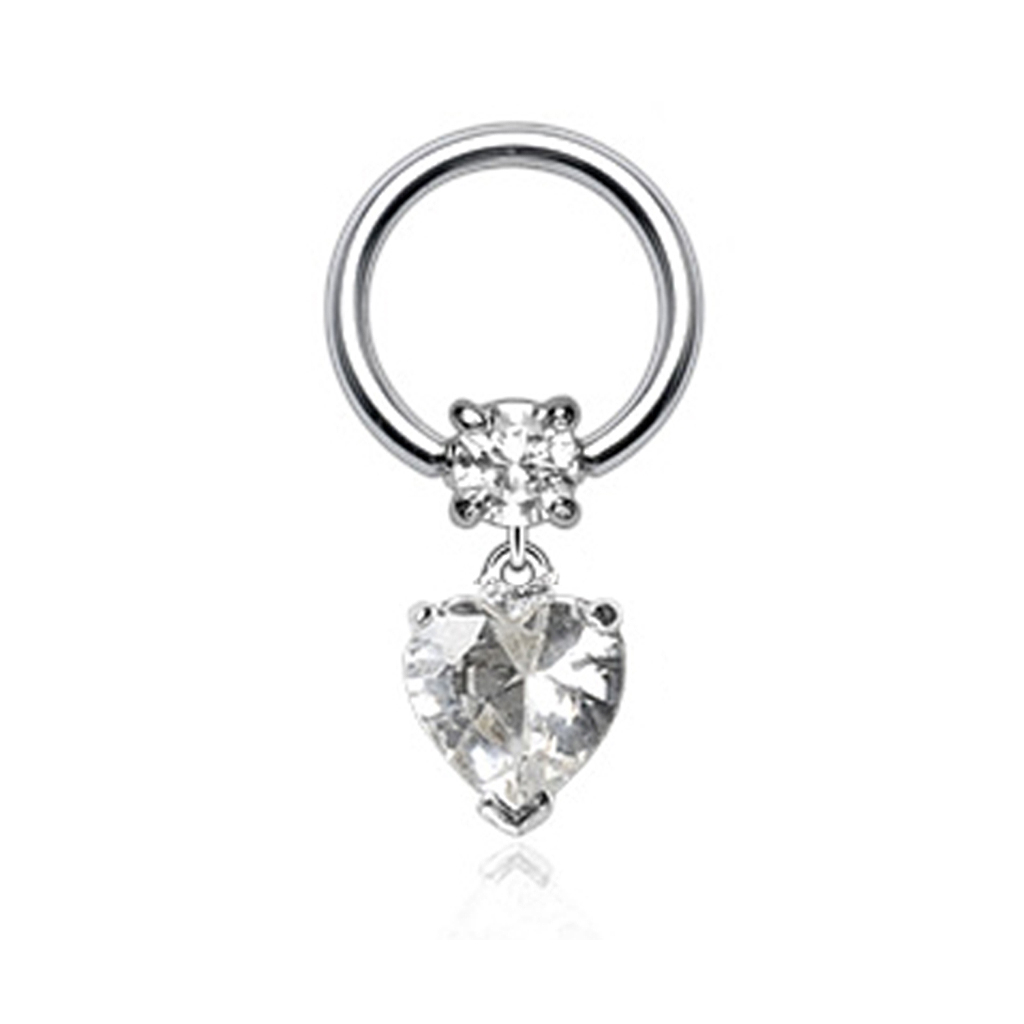 Cet anneau a un super coeur doux, simple et petit sur son pendentif. C'est un bijou idéal pour un piercing dans l'hélix ou un piercing intime, où il sera particulièrement doux et séduisant. Il est en acier chirurgical et son petit cœur est d'un blanc éclatant. La pierre a une taille de diamant, qui permet à la lumière de se refléter sous de nombreux angles différents. Dès qu’elle bougera, elle brillera comme un soleil.
