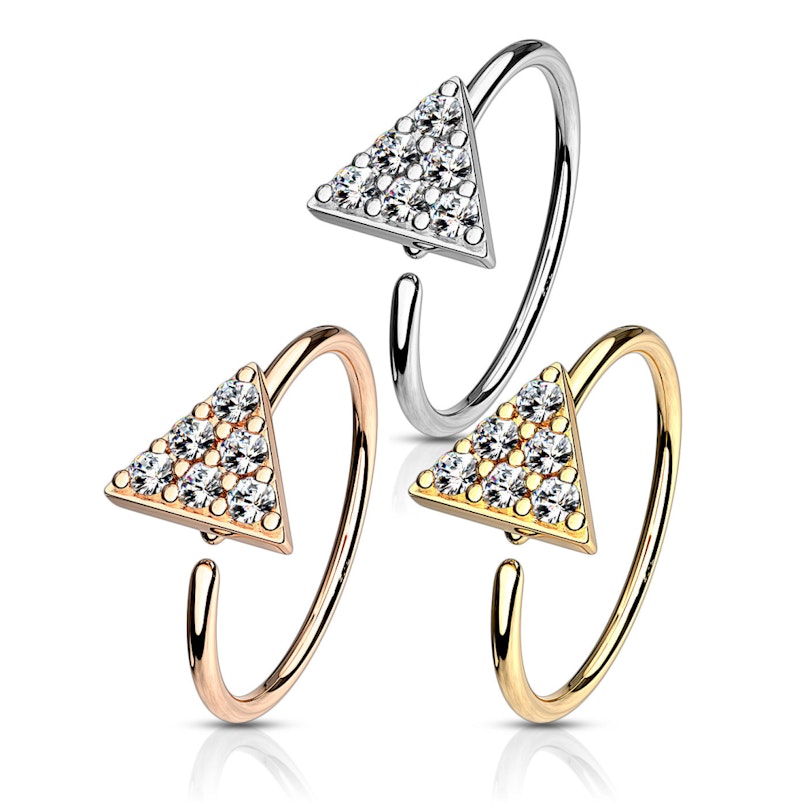 Les bijoux ici sont incroyablement intelligents. L'anneau peut être utilisé dans plusieurs piercings différents, entre autres comme un joli anneau de nez. Il faut juste faire attention aux dimensions du bijou car il ne convient pas à tous les piercings. Les bijoux mesurent 0,8 mm. en épaisseur de fil et 8 mm. de diamètre.