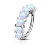 L'anneau est en acier chirurgical. Il y a sept opales alignées au total. Les pierres sont toutes synthétiques, mais heureusement cela ne se voit pas. Tu peux choisir les couleurs des pierres. Il y a des pierres blanches et de pierres bleues, par exemple.