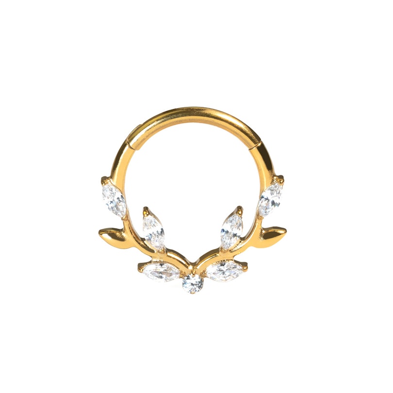 Nom: Anneau clicker en titane orné de pierres et feuille de vigne