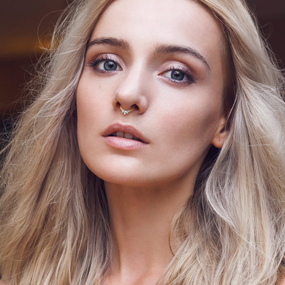 L'anneau ci-dessus peut être utilisé dans de nombreux piercings, par exemple, dans le septum ou dans le daith. L'anneau est en or 14 carats et est disponible en deux variantes : or jaune et or blanc. Les deux variantes sont en or 14 carats.