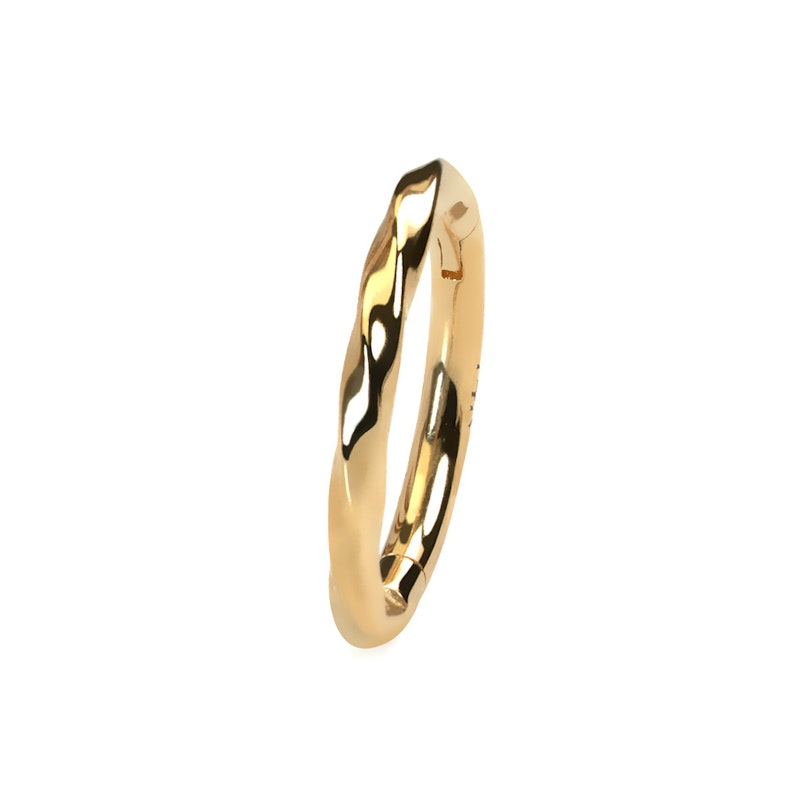Le superbe bijou que nous te présentons est un anneau segment en or 14K. Comme tu peux le voir, il possède un design en forme de spirale, ce qui lui confère une texture intrigante. Il sera du plus bel effet dans un large éventail de piercings d'oreille, notamment au lobe, à l'hélix, au daith et au rook. De plus, cet anneau est muni d'un mécanisme de fermeture « à charnière ». Grâce à son segment articulé, ce bijou est très facile à mettre en place, en plus d'être très agréable à porter.