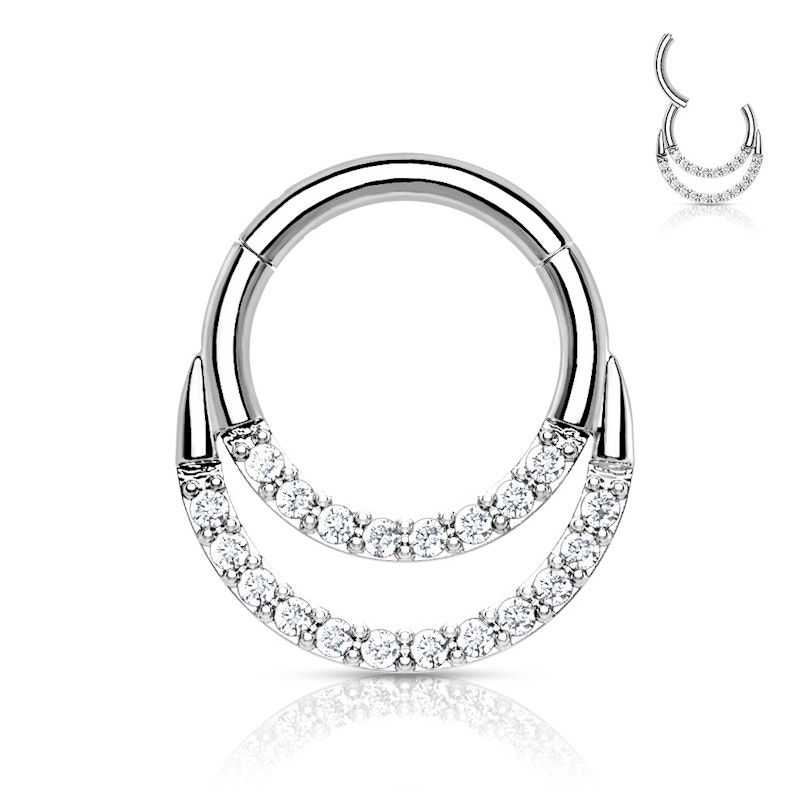 Anneau en titane à charnière et double rangée de pierres