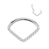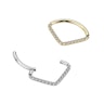 Tu recherches un bijou qui brille de mille feux ? Nous avons exactement ce qu'il te faut ! Ce sublime anneau présente un design intemporel en forme de chevron. De plus, sa partie angulaire est ornée de pierres transparentes en oxyde de zirconium et sa partie incurvée (celle qui s'insère dans ton trou de piercing) offre un confort optimal. En résumé, c'est l'anneau idéal si tu aimes les bijoux étincelants qui attirent tous les regards.