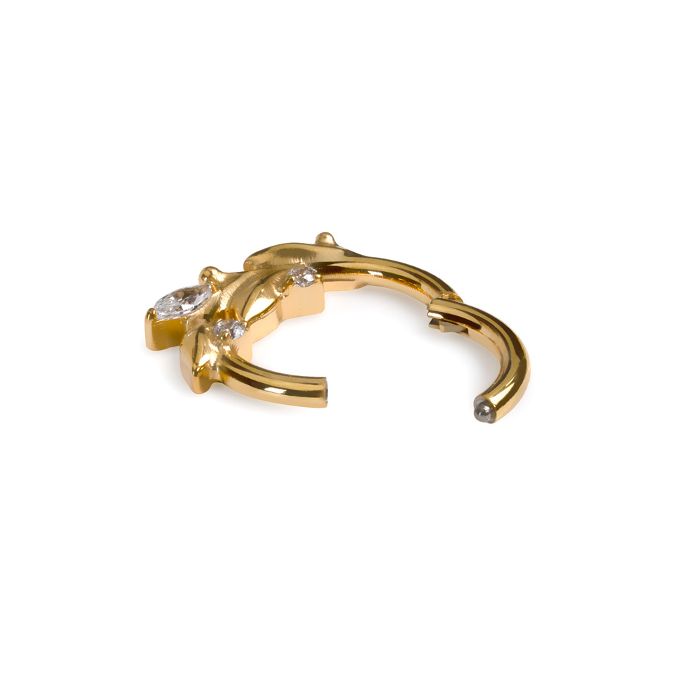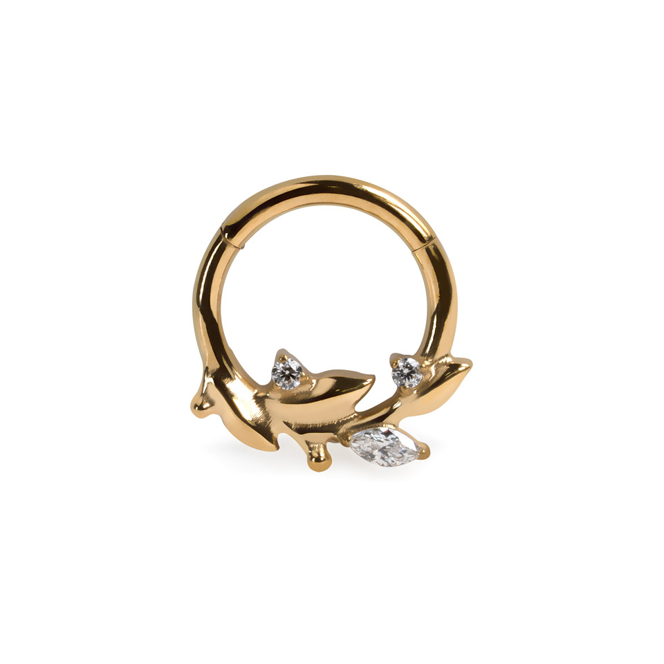 Le joli bijou que nous te présentons est un anneau avec de jolies feuilles. Il est fabriqué en titane, un matériau idéal pour les personnes à la peau sensible en raison de ses propriétés hypoallergéniques. Enfin, il est doté d'un mécanisme de fermeture à charnière. Il est donc très simple à mettre en place.