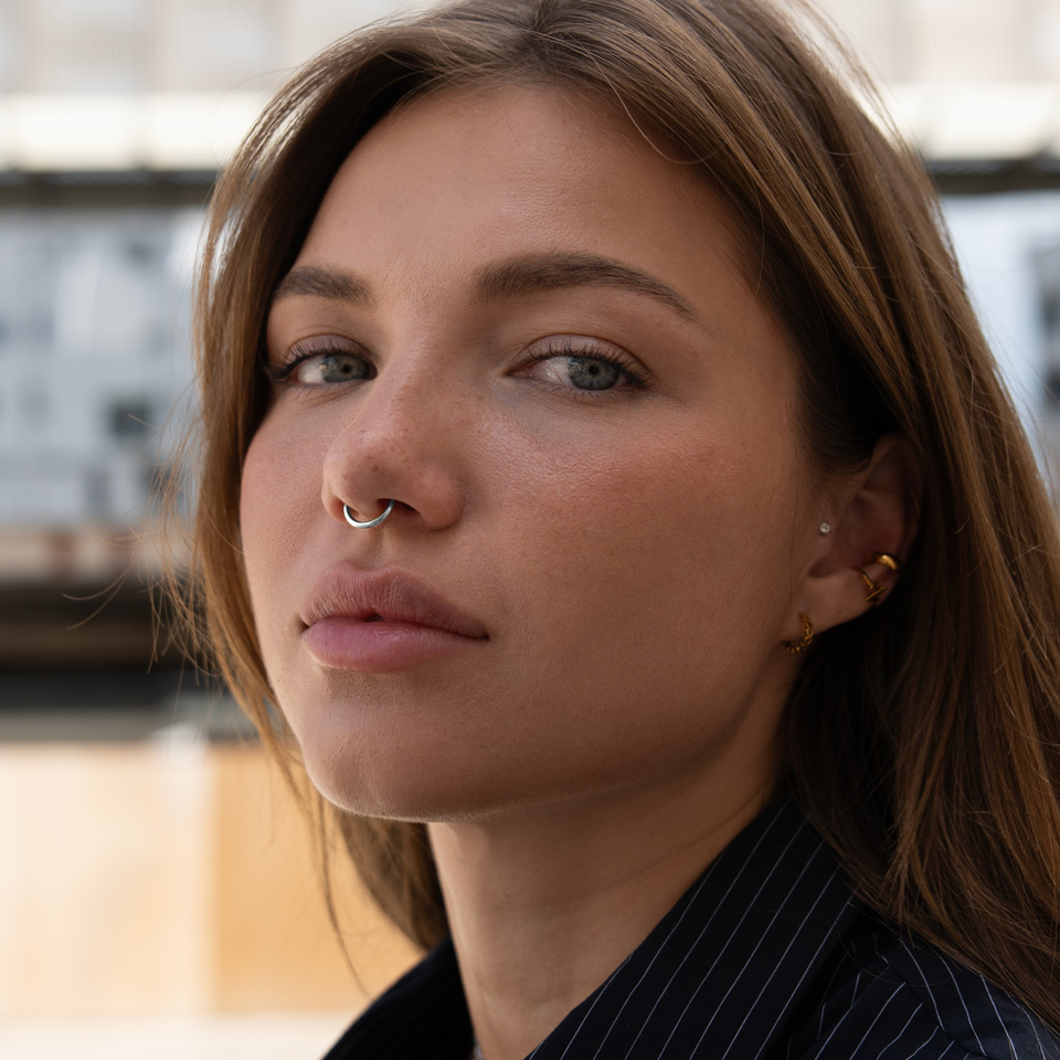 Tu peux porter cet anneau dans beaucoup de piercings, tout dépend des mesures à prendre. Choisis parmi les différentes options de dimensions.