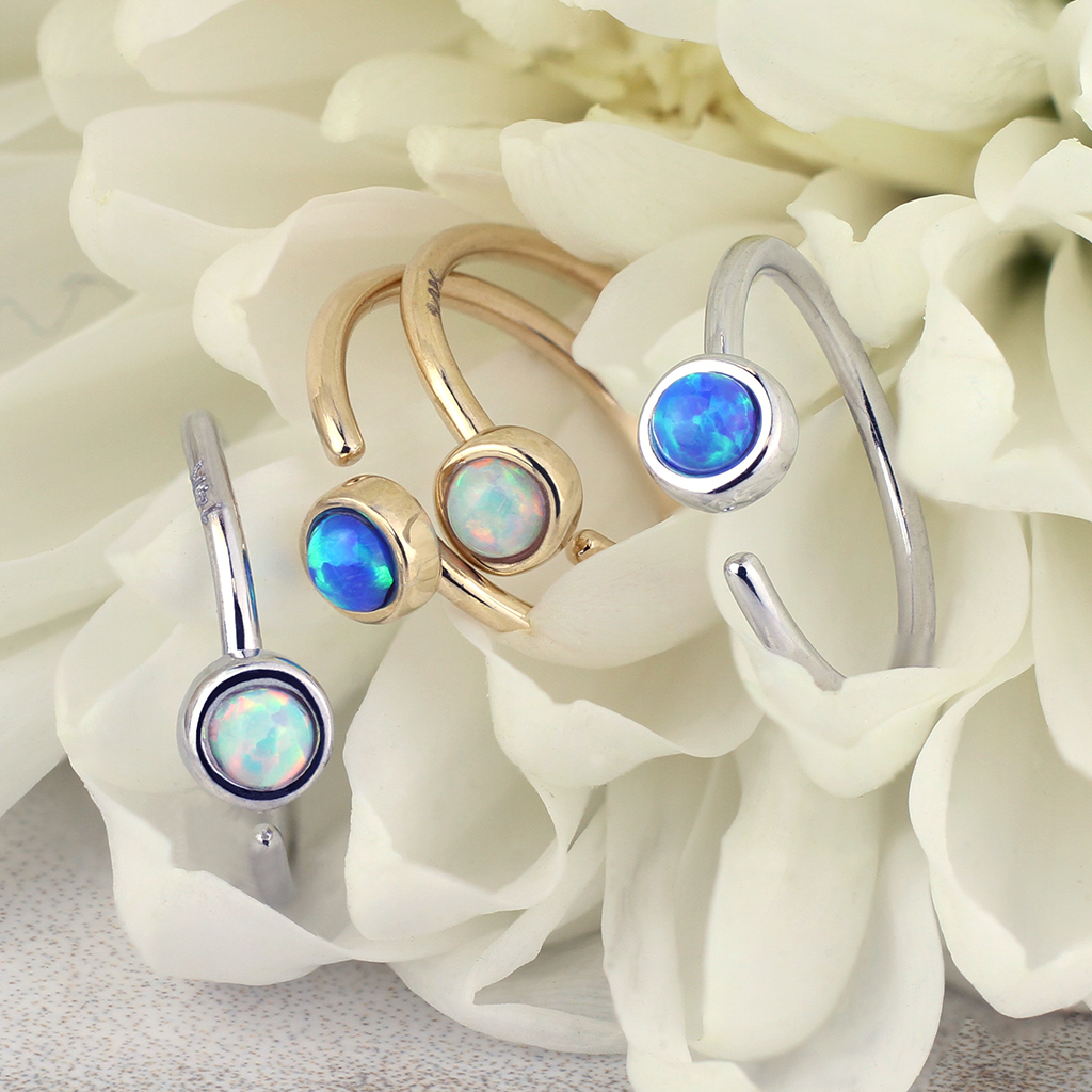 Comme pour le choix du matériau, tu choisis également la couleur de l'opale : opale blanche ou une opale bleue. L'opale blanche a des nuances allant du rouge, du jaune au vert, mais la totalité de la pierre apparaîtra blanche. Le bleu adhère aux nuances bleues, comme le bleu clair, le turquoise et le bleu foncé.