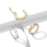 Si tu souhaites ajouter un côté amusant à tes piercings, cet anneau doté d'une rangée de cœurs est fait pour toi ! Ce bijou est en acier chirurgical et possède un mécanisme d'ouverture et de fermeture à charnière. Dans la pratique, cela signifie qu'il est extrêmement simple à insérer et à retirer de ton trou de piercing, ce qui en fait un bijou idéal si tu changes régulièrement de bijoux. Il est disponible en deux longueurs différentes (8 mm et 10 mm), pour une épaisseur du fil de 1,2 mm.