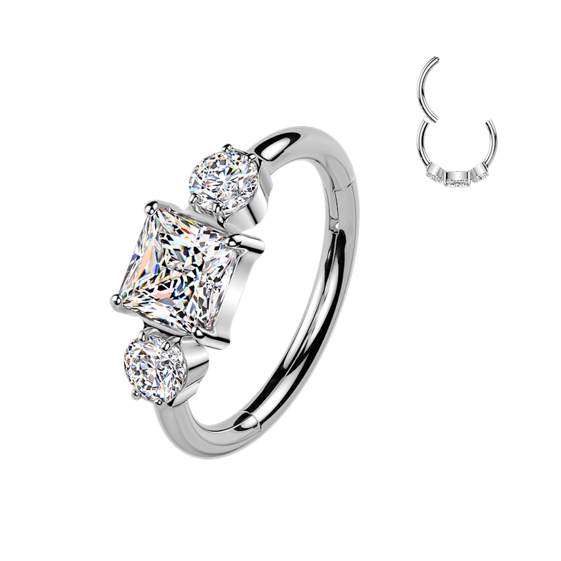 Trois pierres, un bijou sublime. Cet anneau segment de la marque Bodymod Premium est orné de trois pierres en oxyde de zirconium, pour toujours plus d'éclat. Il est à la fois discret pour pouvoir être porté au quotidien et suffisamment scintillant pour ne laisser personne indifférent.