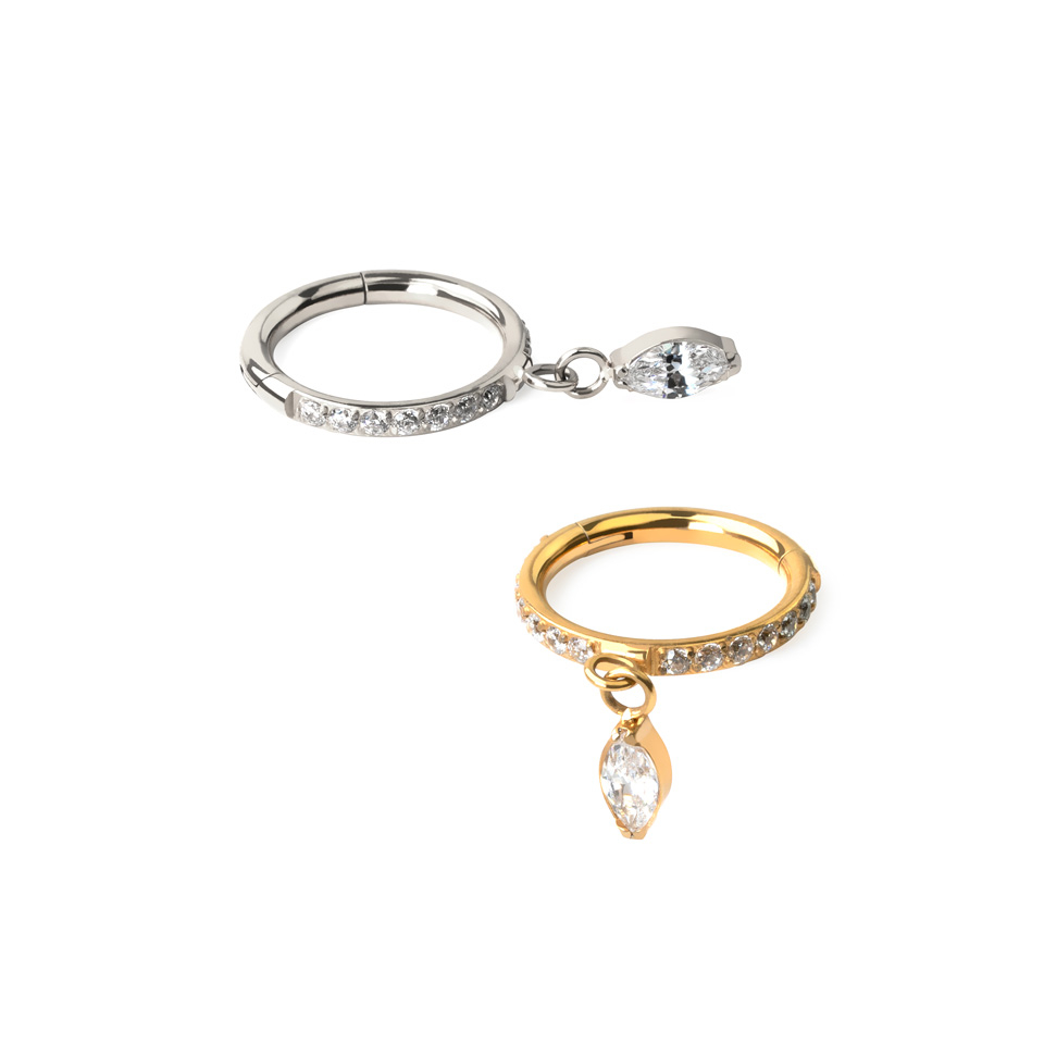 Nom: Anneau segment en titane orné de pierres et pendentif taille marquise