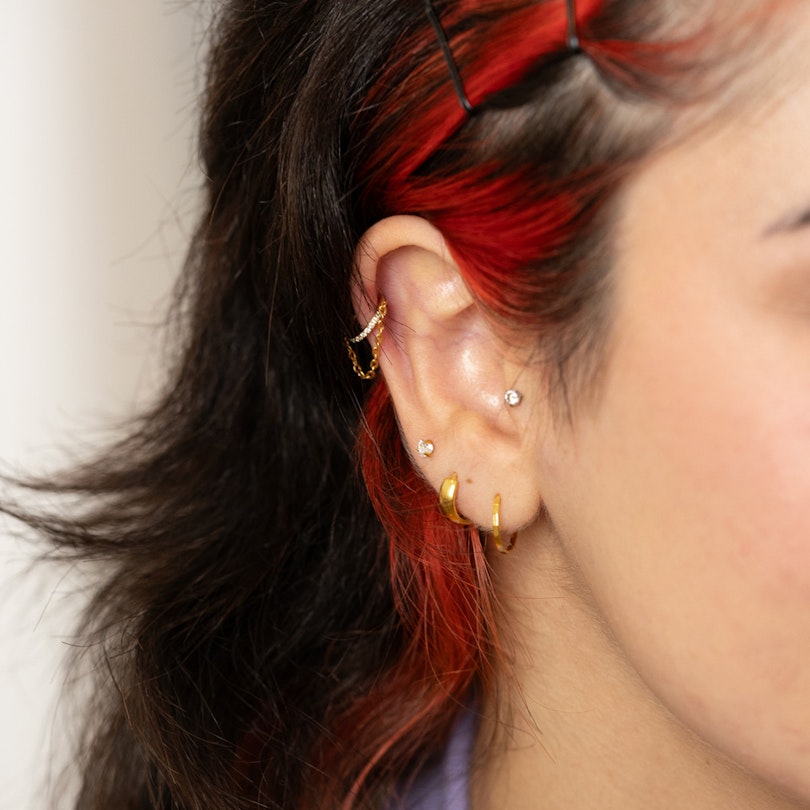 Ce bijou est disponible en deux couleurs différentes (or et argent) et en deux diamètres différents (8 mm et 10 mm). Il s'agit donc d'un accessoire de mode idéal pour ajouter une touche unique à tes arrangements d'oreilles, quel que soit l'endroit où tu souhaites le porter.