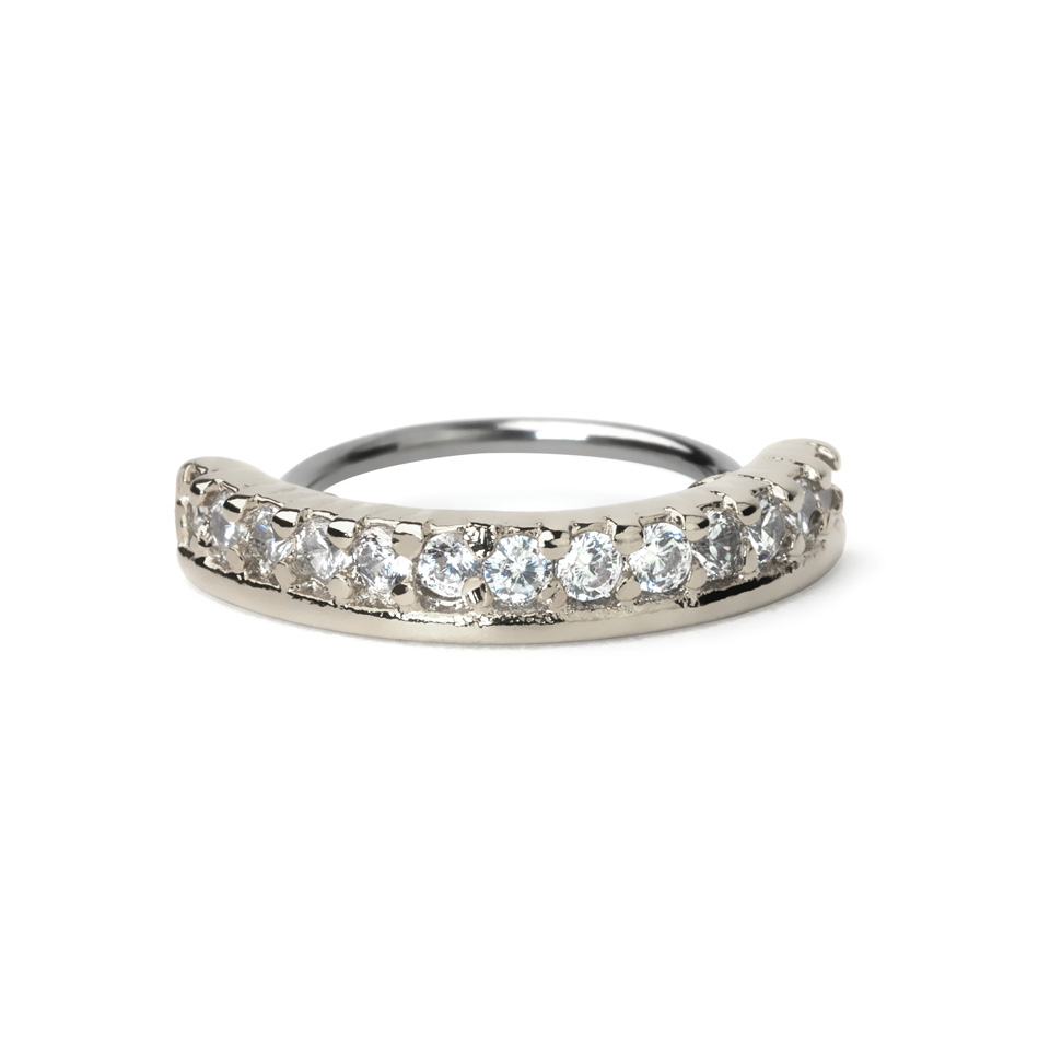 La partie de ce sublime anneau en contact avec ta peau est en acier chirurgical et les ornements sont en laiton. Pour l'insérer, il te suffit de le tordre délicatement, vers l'avant ou vers l'arrière, afin de former un S. Une fois inséré, il se refermera tout seul !