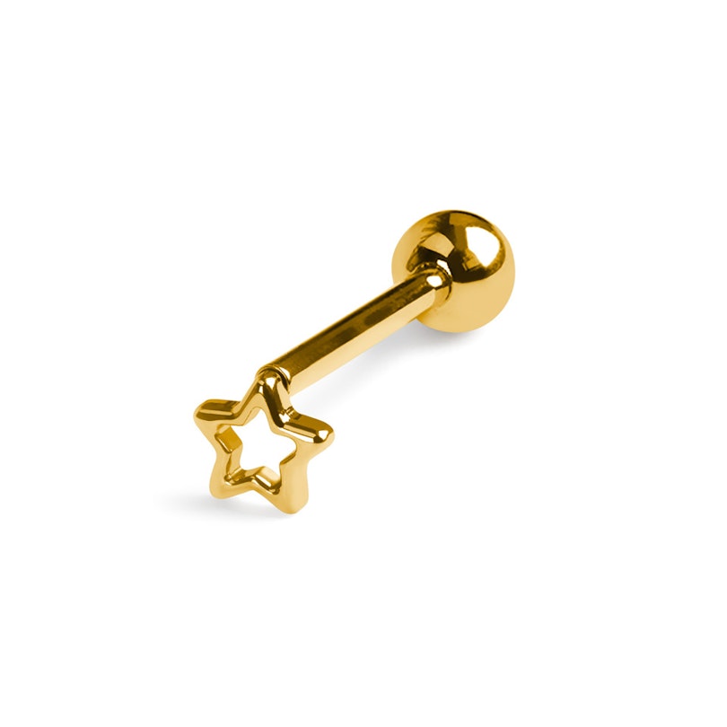 Le bijou que nous te présentons est un joli barbell pour la langue orné d'une étoile. Il est fabriqué en titane, un matériau idéal pour les personnes à la peau sensible en raison de ses propriétés hypoallergéniques. De plus, il est doté d'un filetage interne, ce qui signifie que tu dois uniquement insérer la tige dans ton trou de piercing pour le mettre en place.