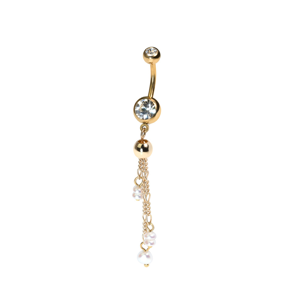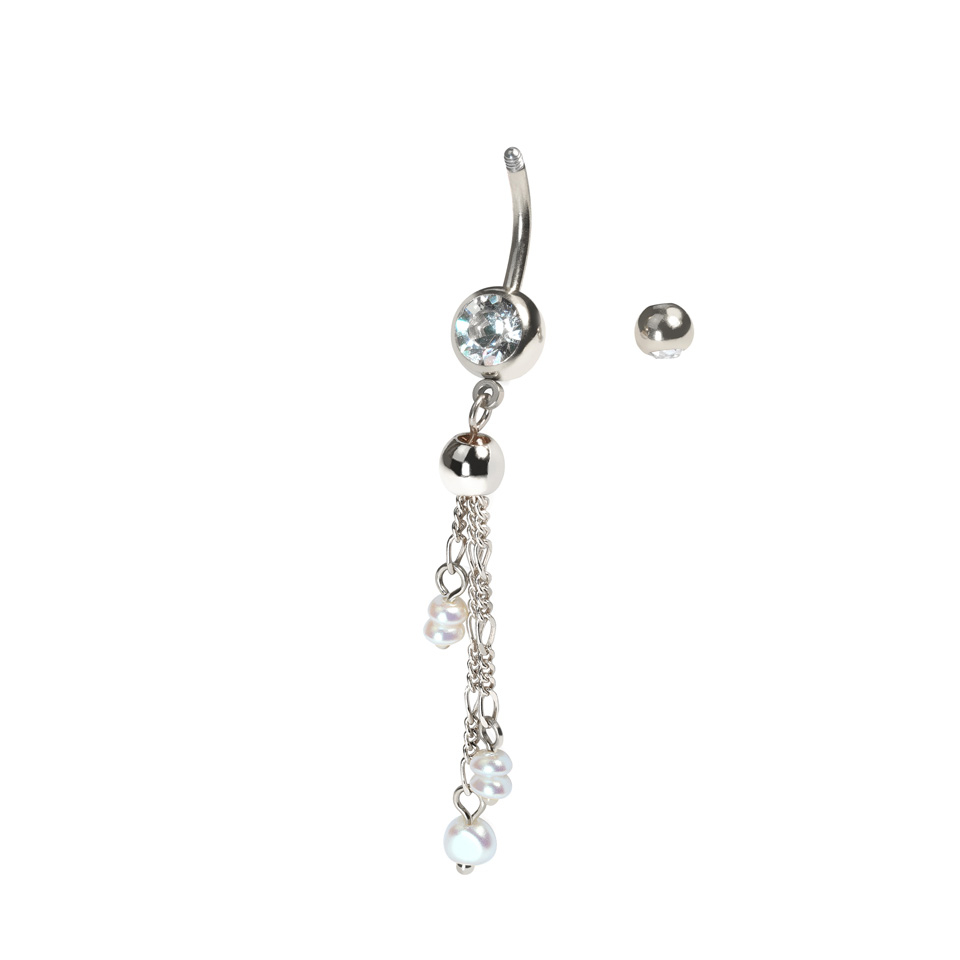 Barbell pour le nombril avec chaînes et perles de synthèse