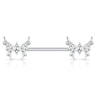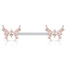 Si tu cherche un modèle spécial pour ton piercing aux tétons, nous avons ce qu'il te faut. Ce bijou est constitué d'une tige droite d'environ 17 mm. À chaque extrémité, il y a un petit papillon avec de jolies ailes. Le corps du papillon est décoré d'une petite pierre de marquise, qui suit très bien les lignes du corps. Les ailes sont décorées de petites pierres de couleur claire combinées à la grande pierre du centre.