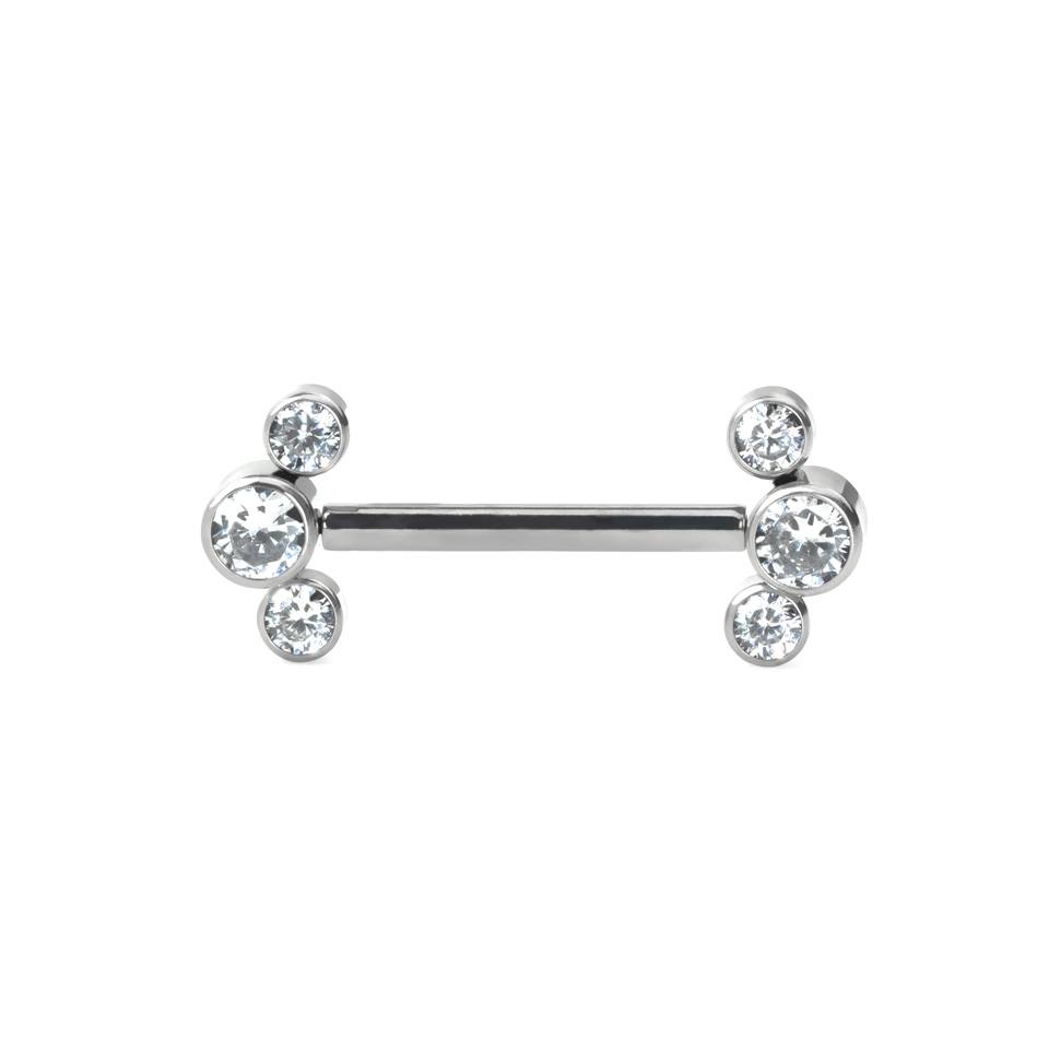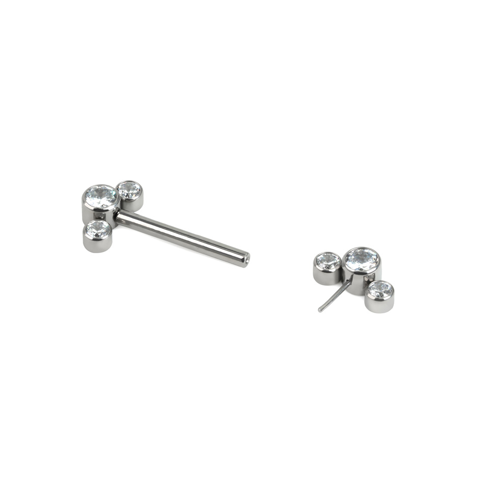 Barbell pour le téton sans filetage avec 3 extrémités serties de CZ