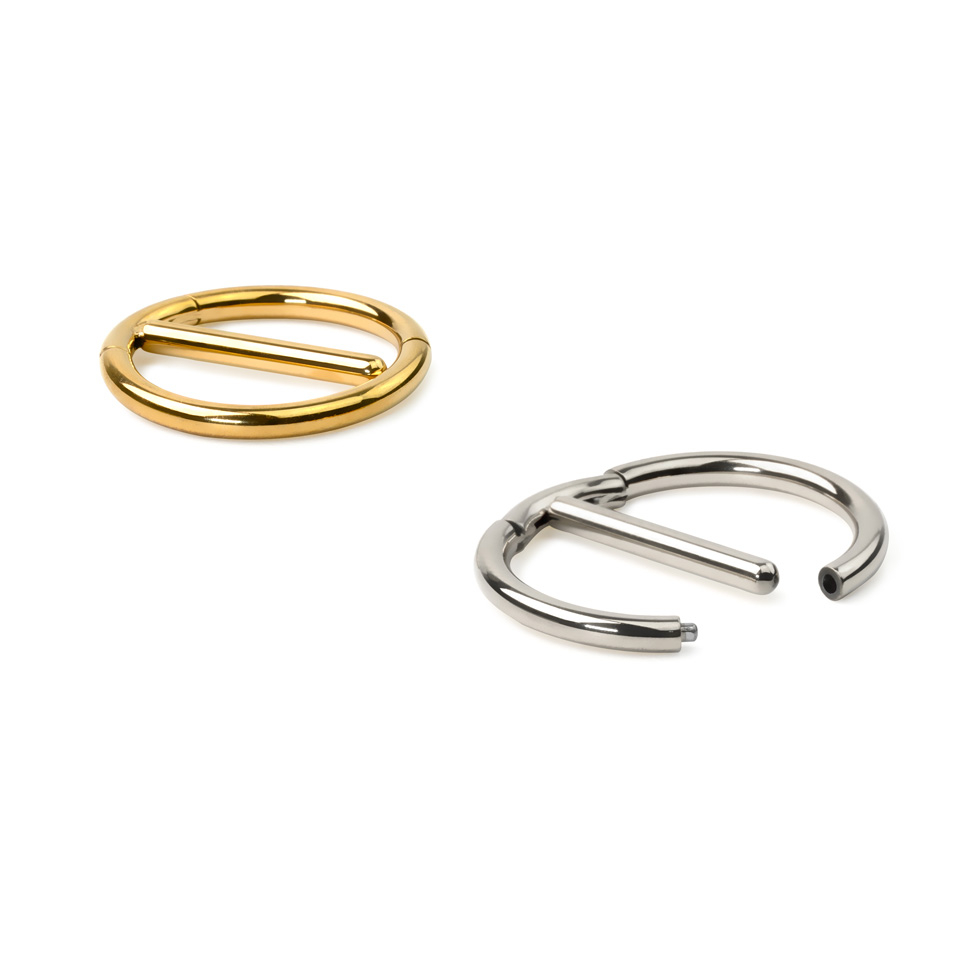 Cet élégant bijou de piercing pour le téton est muni d'une barre entourée d'un anneau à double charnière. Il est disponible en quatre couleurs différentes pour que tu puisses choisir la couleur qui correspond le mieux à tes envies.