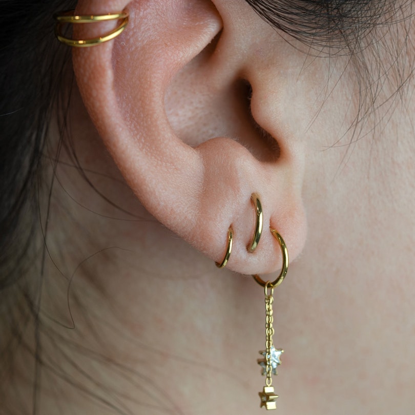 Trois étoiles, trois chaînes et du style à revendre. Ce charm avec un trio d'étoiles en titane est idéal pour ajouter du mouvement et du caractère à ta compo de bijoux. Comme tu peux le voir, ses trois chaînes sont suspendues à un seul anneau et chacune d'entre elles est ornée d'une pierre transparente avec un sertissage à griffes à son extrémité.