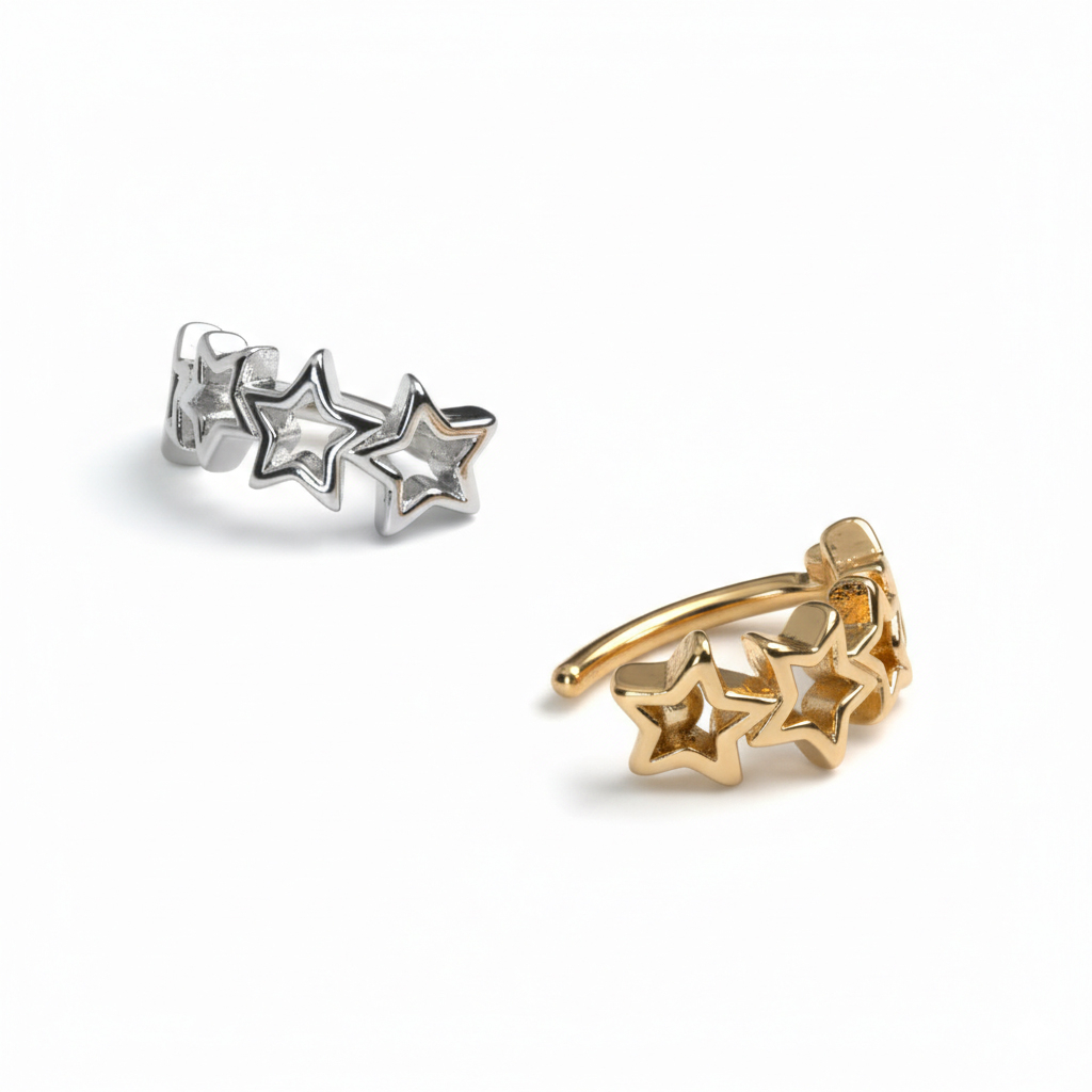 Le joli bijou que nous te présentons est un clicker pour le nombril avec des étoiles, doté d'un mécanisme de fermeture à charnière. Cela signifie qu'il est très facile à mettre en place. Il s'agit donc du bijou idéal pour compléter ta collection de bijoux pour le nombril.