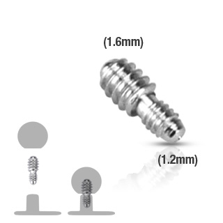 Cette tige mesure 1,2 mm d'épaisseur dans une moitié, que tu peux visser dans ton microdermal. L'autre moitié a une épaisseur de 1,6 mm, ce qui correspond à la même épaisseur que celle de la plupart des boules. Par conséquent, tu peux ajuster ce convertisseur dans ton piercing et, une fois placé, visse toute balle avec un filetage intérieur de 1,6 mm d'épaisseur.