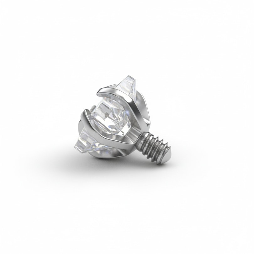 Ce bijou est fabriqué en titane ASTM F-136, un matériau hypoallergénique, waterproof et extrêmement durable. Il est conçu pour être utilisé avec des filetages externes de 1,2 mm ou des ancres dermales de 1,6 mm. Tu peux facilement le changer dès que tu ressens l'envie de rafraîchir ton look, mais il faut que tu disposes des outils adaptés.