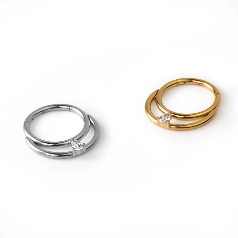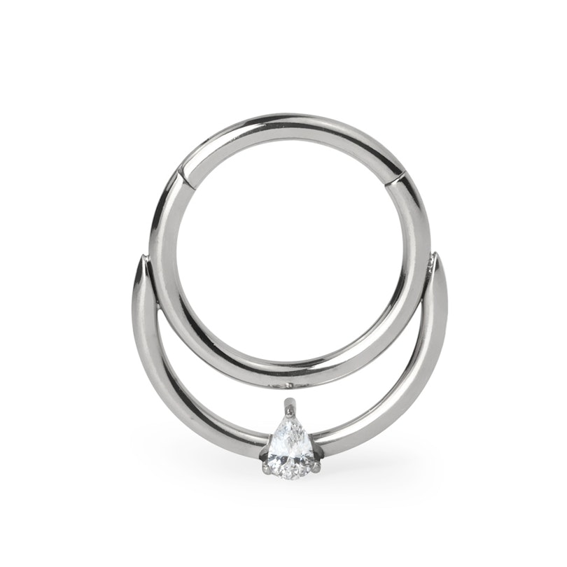 Nom: Double anneau en titane à charnière et pierre en forme de goutte