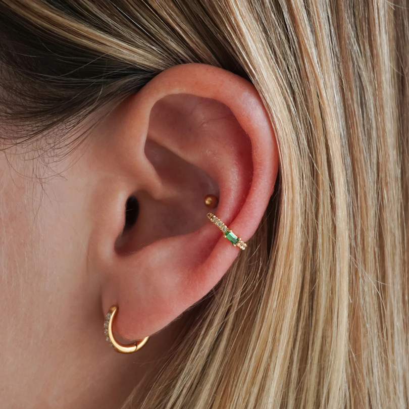 Quelquefois, une simple touche de couleur peut changer un look du tout au tout. Grâce à cet earcuff orné d'une superbe pierre verte, c'est exactement ce que tu pourras faire, sans passer par la case aiguille.