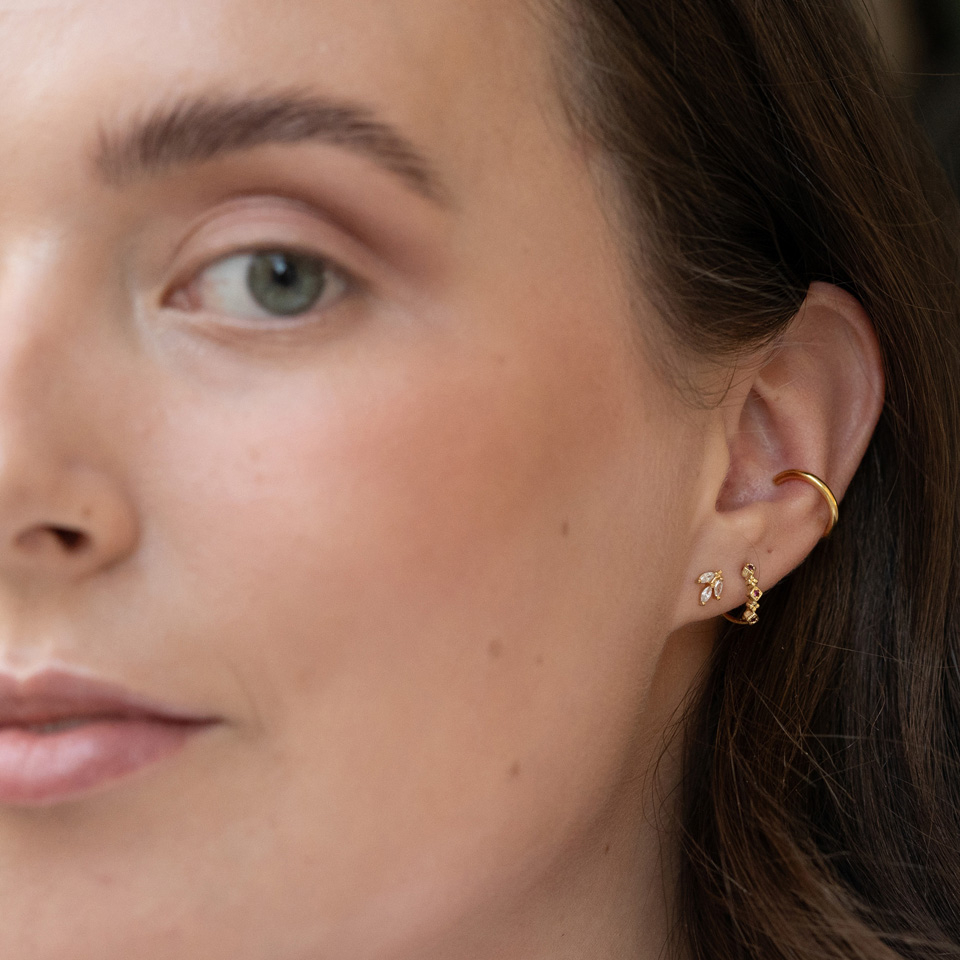 Il s'agit d'un anneau à ressorts. Dans la pratique, cela signifie qu'il te suffit de tirer le ressort vers l'arrière, d'insérer le bijou et de le relâcher pour qu'il se referme à l'endroit voulu. La partie plate doit être cachée derrière ton oreille ou à l'intérieur de ta lèvre ou de ton nez. De cette façon, personne ne remarquera qu'il s'agit d'un faux anneau de piercing !