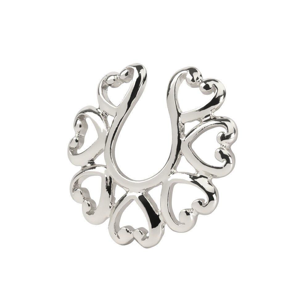 Tu envisages de te faire percer le téton, mais tu n'arrives pas à te décider ? Avant de prendre ta décision, essaie ce sublime faux bijou et découvre ce que cela donne sur toi ! Il s'agit d'un faux bouclier pour le téton avec des jolis cœurs qui entoureront ton téton une fois le bijou en place.