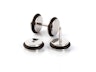 Plug très simple, sans couleur, motif ou tampon. Ce faux plug est en acier chirurgical et comporte une boucle d'oreille de chaque côté du bijou.