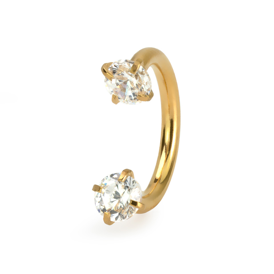 Les pierres sont vissées dans la tige, plutôt que sur la tige. Cela signifie que le fer à cheval a un filetage interne. Le fil est ainsi caché et le risque de déchirure à l'intérieur de ton piercing est considérablement réduit.