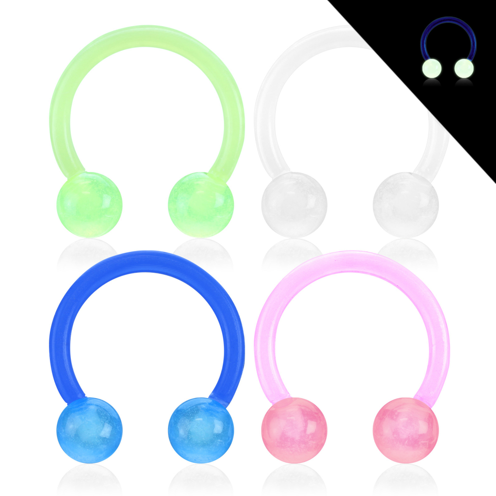 Si nous éteignions la lumière, le fer à cheval sur la photo ci-dessus serait illuminé. Tu recherches un fer à cheval lumineux en acrylique ? Quand la nuit tombe, le fer à cheval s’allume. Cela le rend parfait pour les fêtes avec beaucoup de couleurs. Le fer à cheval peut être utilisé à plusieurs endroits sur le corps, selon l'endroit où tu es percé - tant que les dimensions sur les bijoux correspondent aux objectifs de ton piercing. Le bijou est souvent utilisé comme un piercing au septum, mais il peut également être utilisé comme piercing au sourcil et à l'oreille.