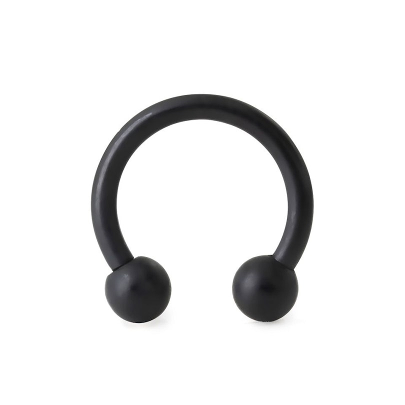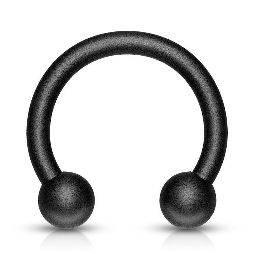 Ce bijou est comme tout les autres fers a cheval, un anneau ouvert avec une petite boule sur chaque éxtrémitié. La seule différence sur ce fer a cheval et la couleur. Les couleurs normale sont des couleurs brillantes ou des couleurs métalliques alors que celui est de couleur noir mat qui lui donne un look un peu plus discret.