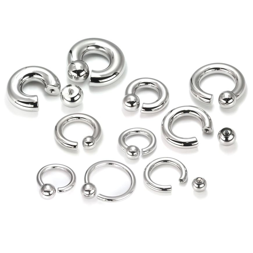Nous te présentons les dernières nouveautés en gros bijoux pour piercings. Tu peux maintenant obtenir un très gros anneau avec les boules les plus pratiques. Au lieu d'être coincé entre les deux extrémités, cet anneau est extrêmement facile à mettre. Lorsque tu essayes de fermer ces grands anneaux, cela te semblera vraiment étonnant, car comme tu le sais, ils sont généralement très difficiles à enfiler et à décoller. Cette boule est attachée à une extrémité par une petite tige qui fait saillie et se courbe à l'extrémité de l'anneau.