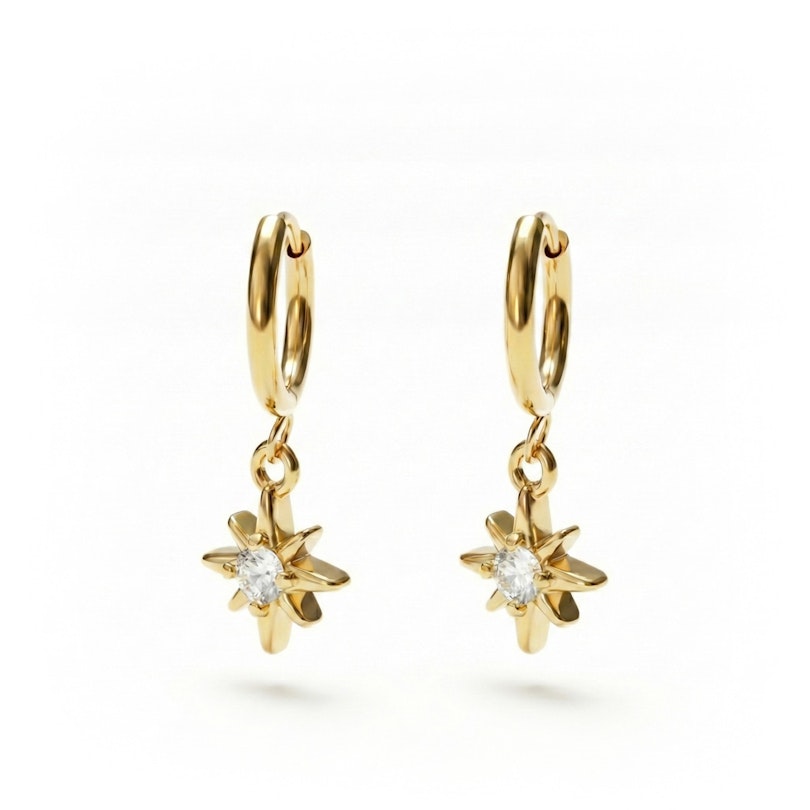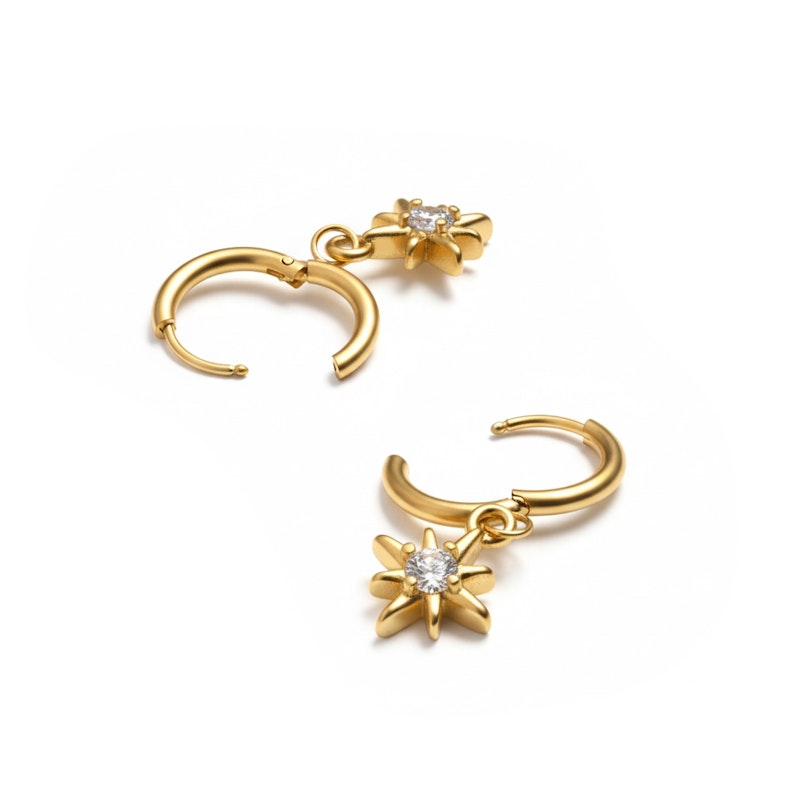 Tu recherches ce petit plus pour te mettre instantanément de bonne humeur ? Cette paire de boucles d'oreilles huggies est faite pour toi ! Comme tu peux le voir sur la photo de présentation, chacune d'entre elles possède un sublime pendentif en forme de soleil avec une pierre en son centre. Ces huggies sont indispensables pour ajouter une touche de caractère à ta compo d'oreille, sans pour autant tomber dans l'excès.