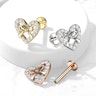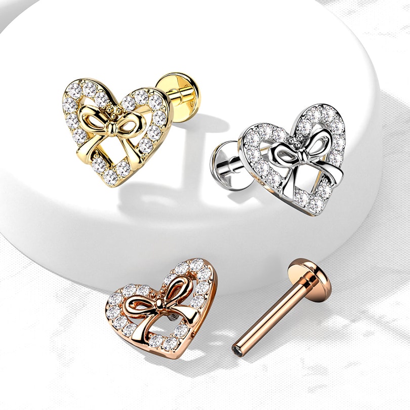 Labret à filetage interne avec un cœur orné de pierres et un nœud