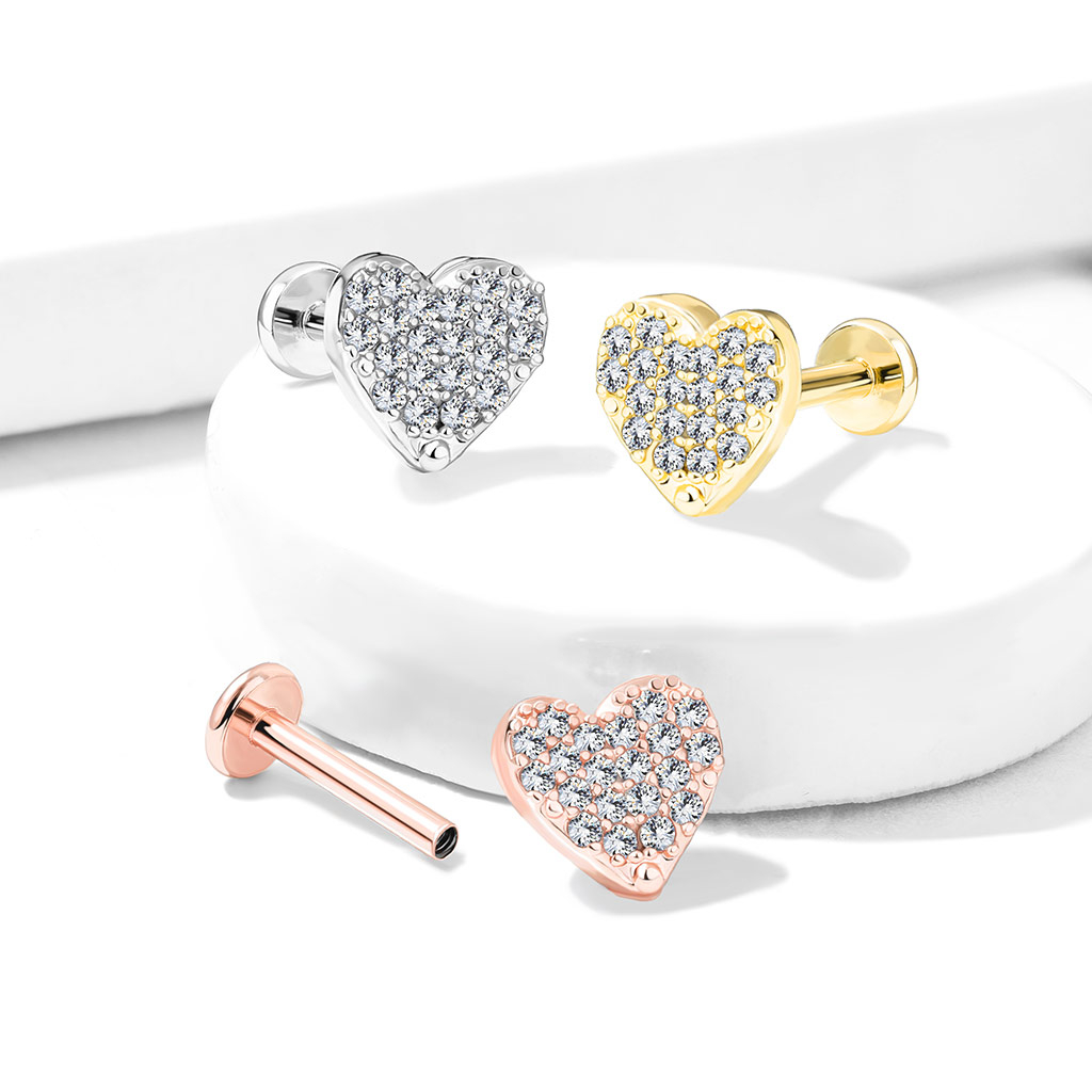 Les designs en forme de cœur rencontrent toujours un franc succès dans le monde des bijoux de piercing. Ce labret possède également un design en forme de cœur, mais avec un détail en plus. Le design en forme de cœur est orné de plusieurs petites pierres transparentes. Ce bijou brille donc de mille feux !
