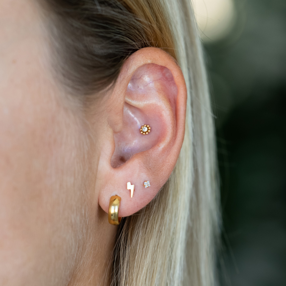 Placement: Tragus, Spiderbite, Snakebite, Medusa, Madonna, Lower labret, Lobe, Hélix, Conch, Anti-hélix, Angelbite