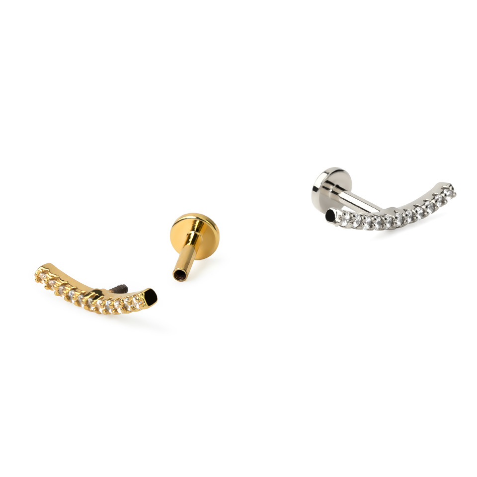 Nom: Labret avec filetage interne et embout courbé orné de pierres