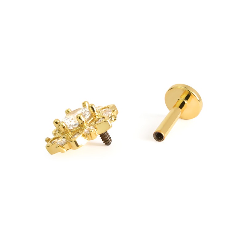 Labret avec filetage interne et fleur de lotus ornée de pierres