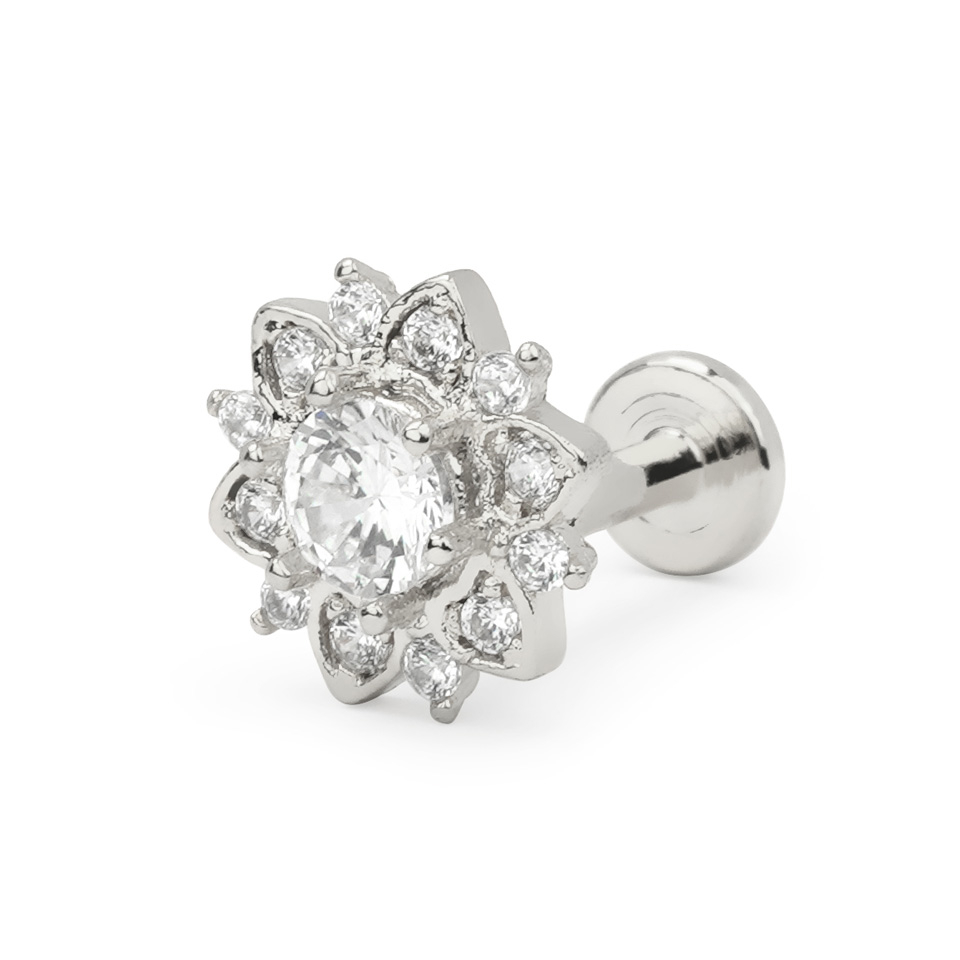Labret avec filetage interne et fleur de lotus ornée de pierres