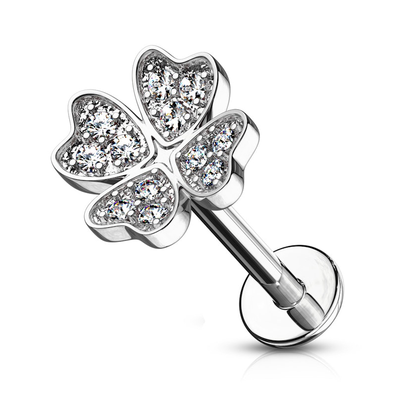 Labret avec filetage interne et un trèfle à quatre feuilles orné de pierres